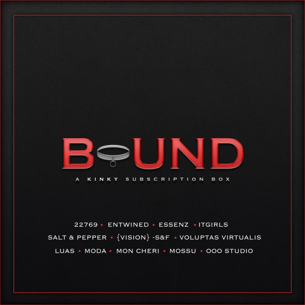 Pale Girl Productions brings you Bound Box, a quarterly kinky subscription box featuring 12 designers, geared toward the BDSM/Kinky community. Our first box will be released on July 12, 2017 and subscriptions started on June 9th. To stay up to date with all teasers and information regarding Bound Box, you can join our inworld Bound Box Update Group.